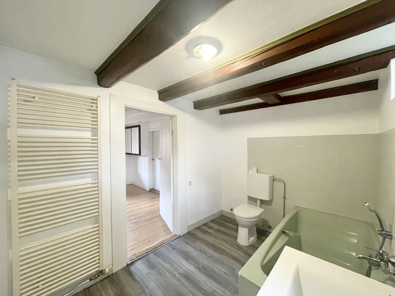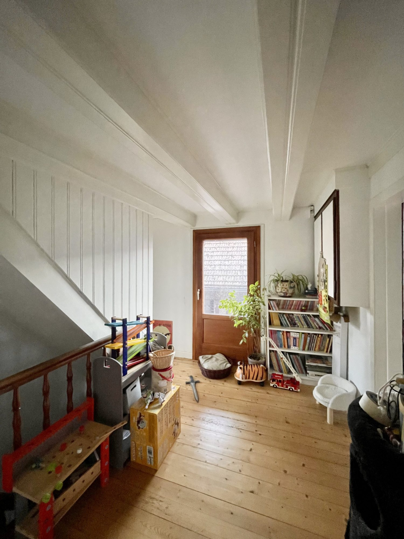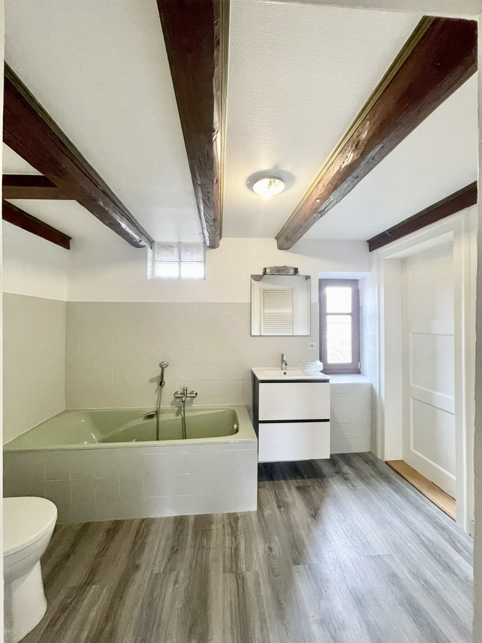 Au 1er étage : un dégagement ; 3 belles chambres de plus de 14m² chacune ; une salle de bains avec un meuble vasque, une baignoire, un wc et une fenêtre.
