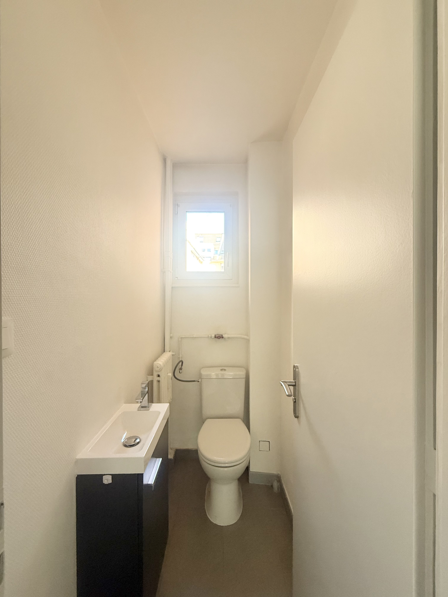 un WC séparé avec une fenêtre et un lave-mains.