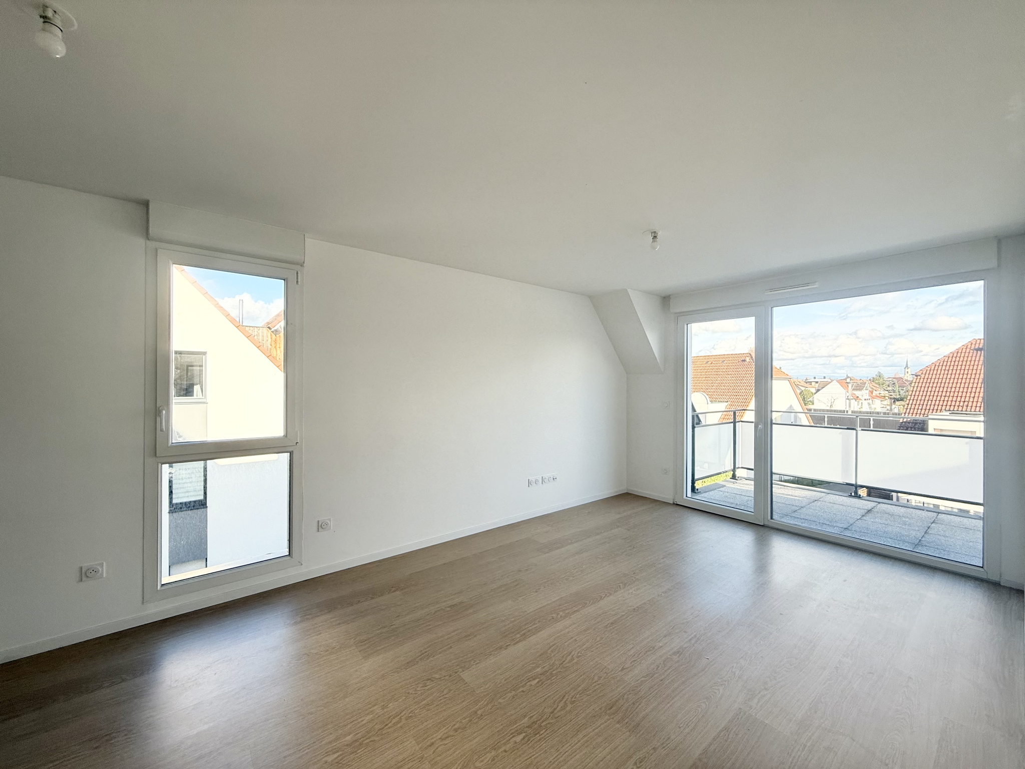 LIPSHEIM - Situé au 3ᵉ et dernier étage d’une résidence récente de 2022 avec ascenseur, découvrez cet appartement offre un cadre de vie moderne et paisible au cœur d’un environnement résidentiel calme. Très lumineux grâce à son exposition et ses larges ouvertures, il séduira les amateurs d’espaces clairs et fonctionnels.
