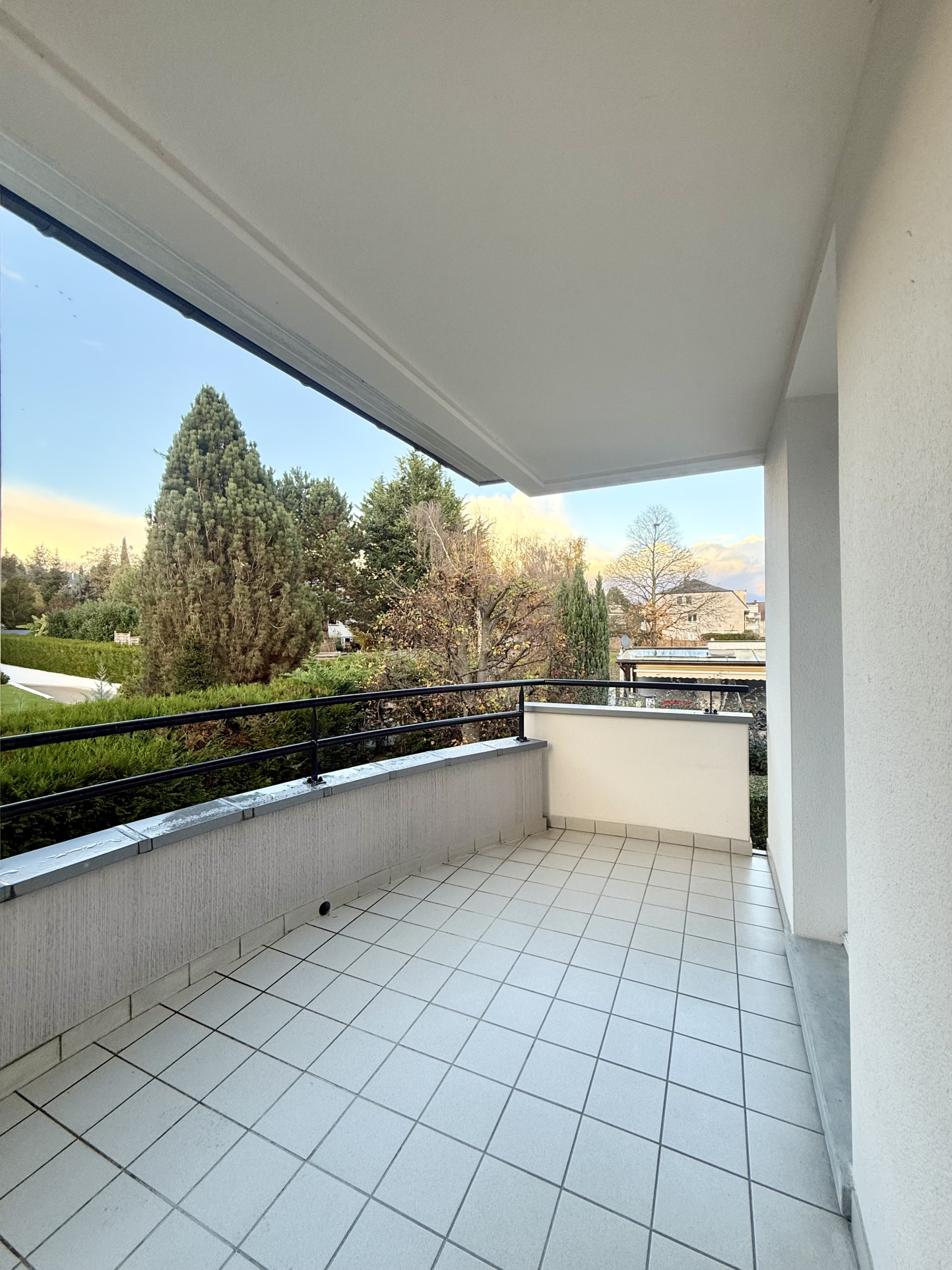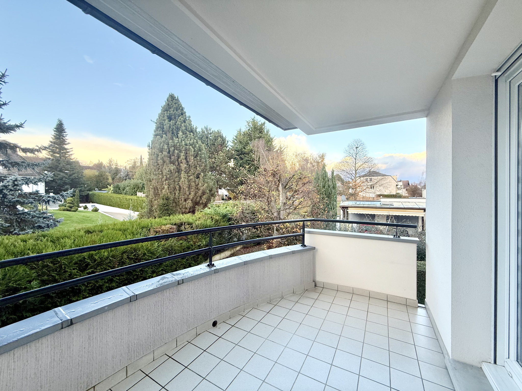 Cet appartement se compose comme suit : une entrée avec placard, une cuisine indépendante équipée (four, plaque de cuisson, hotte), un beau séjour lumineux donnant accès au balcon avec une jolie vue dégagée sur la verdure, deux chambres, une salle de bains ainsi qu'un wc séparé.