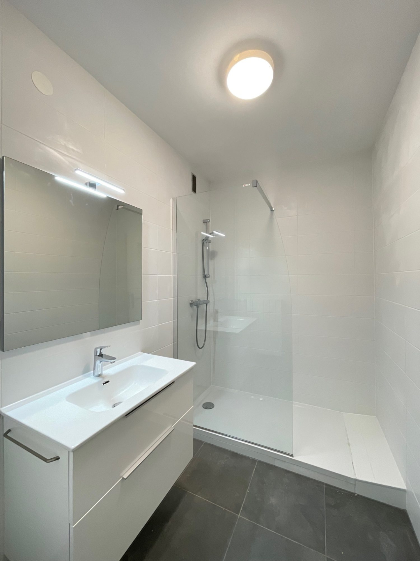 En rez-de-chaussée surélevé d'une copropriété bien entretenue, ce lumineux bien se compose de la manière suivante : - une entrée avec placard de rangement intégré ; - une belle cuisine indépendante aménagée et équipée d'une plaque de cuisson et d'une hotte ; - une superbe pièce de vie d'environ 40m² donnant accès sur un balcon couvert ; - 3 grandes chambres ; - une jolie salle d'eau dotée d'un meuble vasque ainsi que d'une douche à l'italienne ; - un wc séparé.
