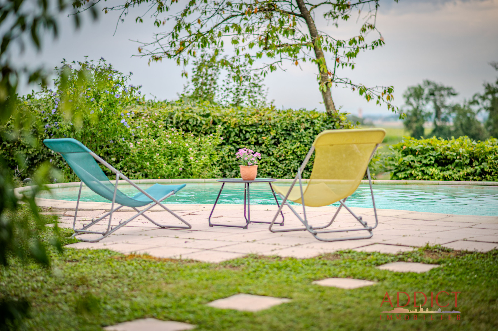 Vous profiterez d'un grand jardin arboré avec piscine, d'une terrasse à l'abri des regards, ainsi que d'un abri de jardin.