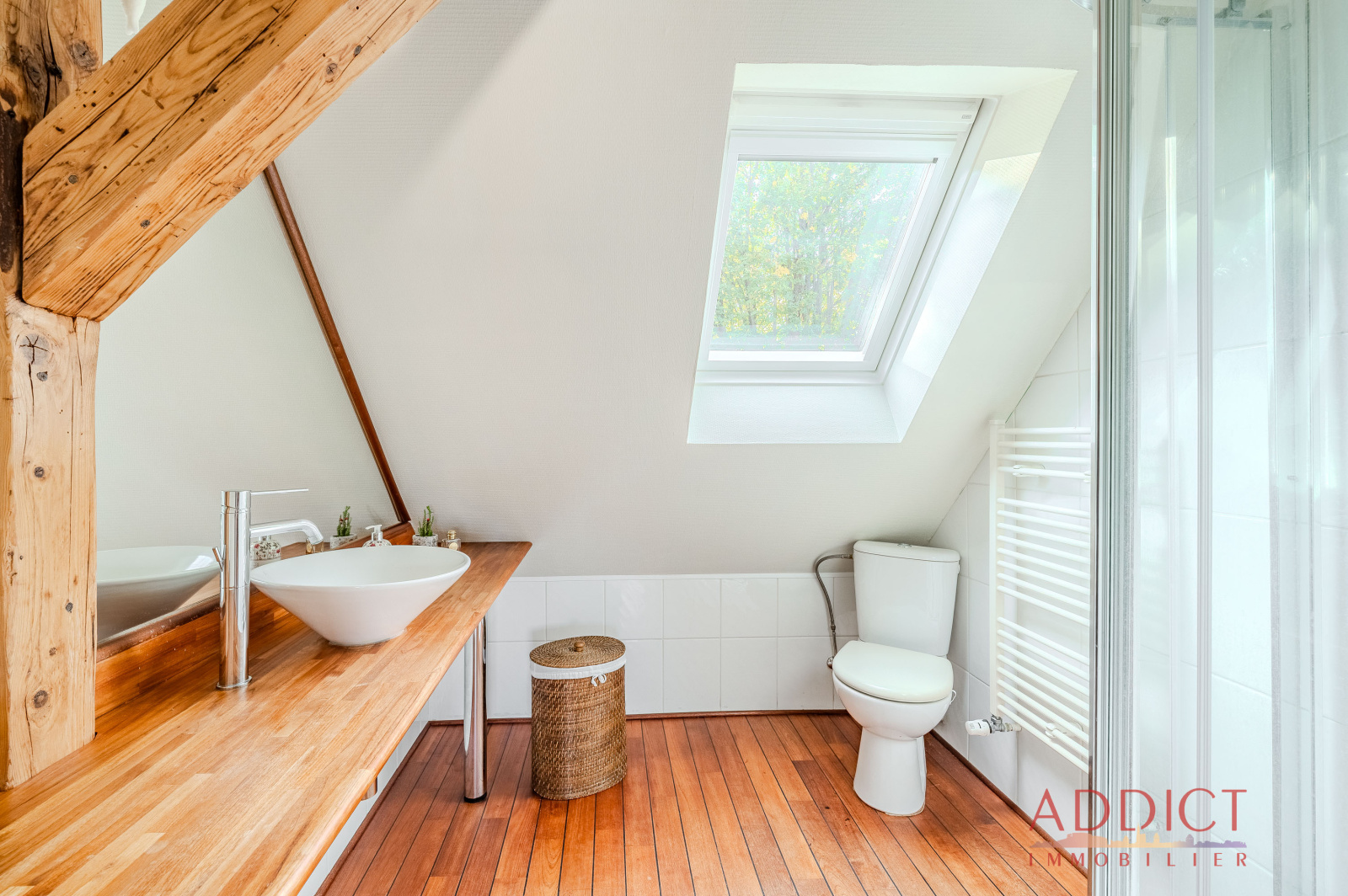 Trois spacieuse chambres et une grande salle de bains complète, équipée d'une baignoire, d'une douche, d'un meuble vasque, d'un wc et de nombreux rangements.
