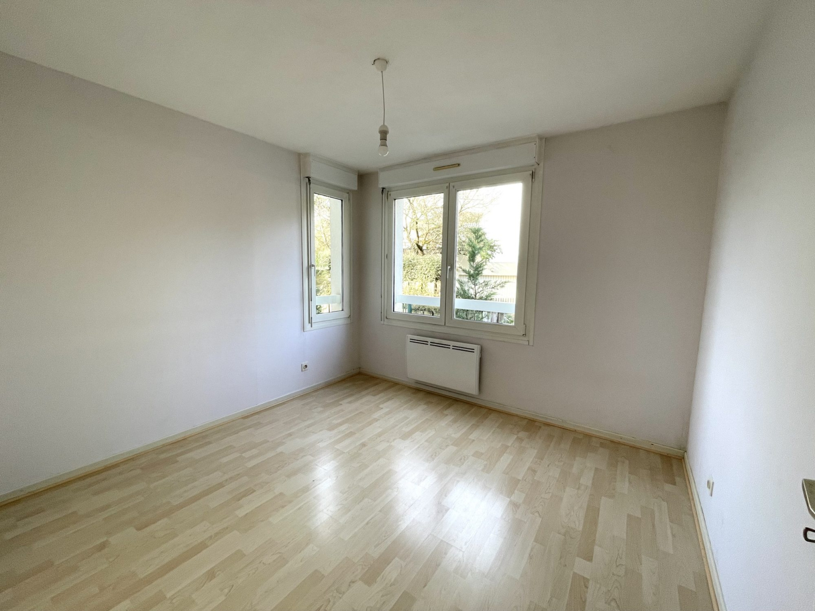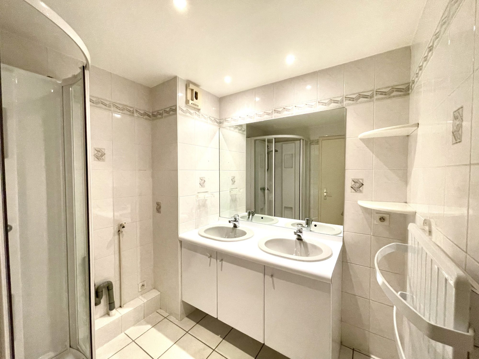 Une entrée, un débarras, un lumineux salon séjour donnant sur la terrasse de 15m² exposée sud-ouest équipée d'un store avec une magnifique vue sur le parc privé de la résidence, une cuisine séparée et équipée, 2 chambres (10.10 m² et 11.84 m²), une salle de douche avec un meuble double vasque, une douche et un sèche serviettes, ainsi qu' un wc séparé avec un lave mains.